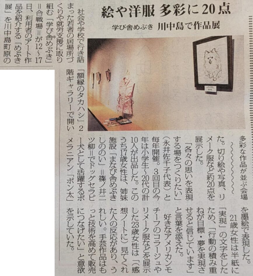 2026年2月20日付の『長野市民新聞』にて、学び舎めぶき主催 第3回『めぶき展』について、掲載されました。